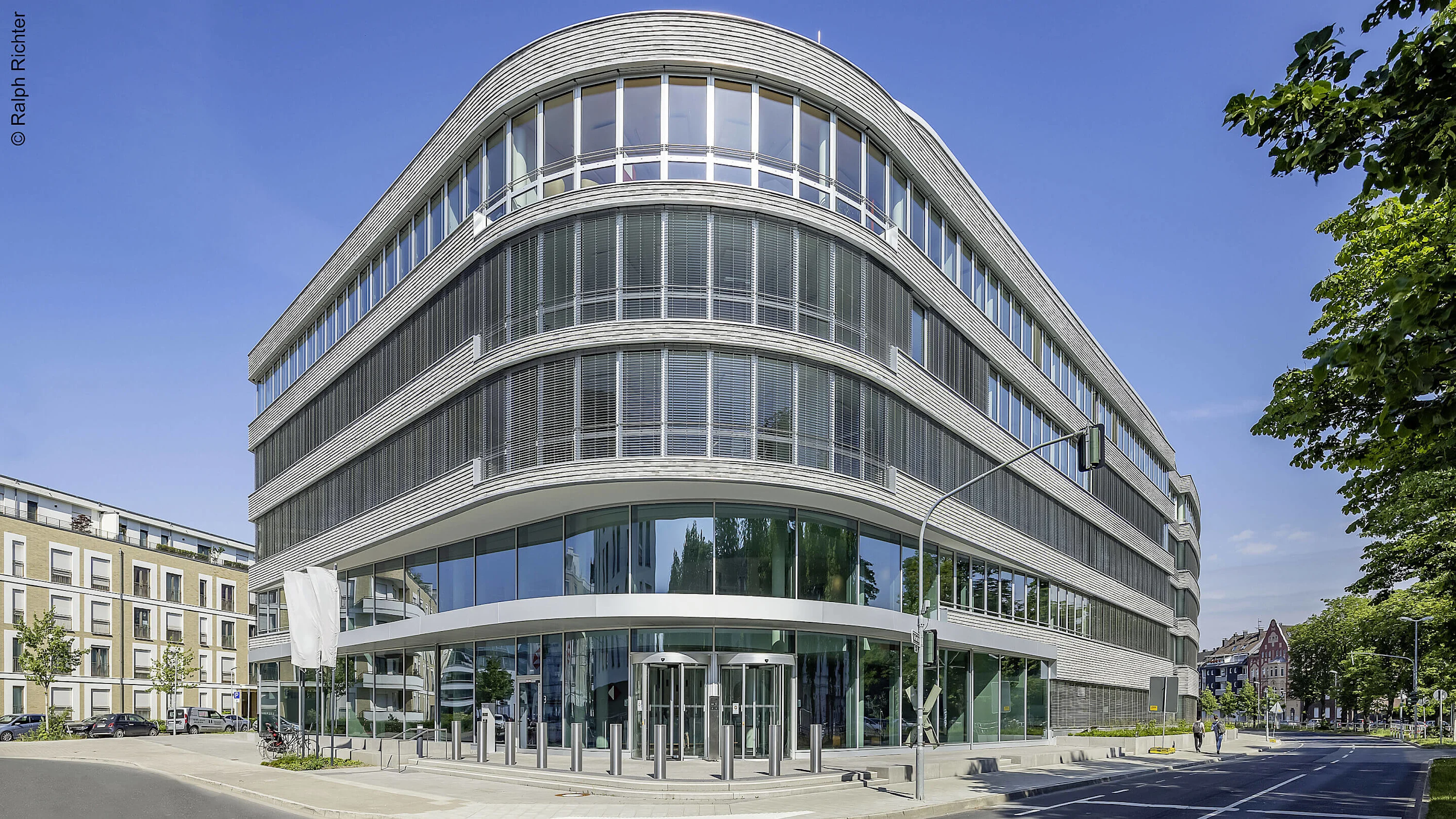 Oberkassel zählt zu den schönsten Vierteln Düsseldorfs. Hier treffen Citynähe und exzellente Verkehrsanbindung, Parks und Rheinufer, Läden und Restaurants aufeinander. Jahrelang war der Stadtteil als Wohnort gesetzt, mit der Büroentwicklung OBRKSSL ist er nun auch als attraktive Firmenadresse bekannt: Harmonisch passt sich die helle Klinkerfassade mit lichter Glasfront in das Stadtquartier am Belsenpark ein. Hinter dem elegant geschwungenen Mauerwerk sind alle zeitgemäßen Arbeitsformen realisierbar – vom Zellenbüro bis zum Open-Space. HSBC Deutschland sicherte sich hier ihren neuen Hauptsitz.