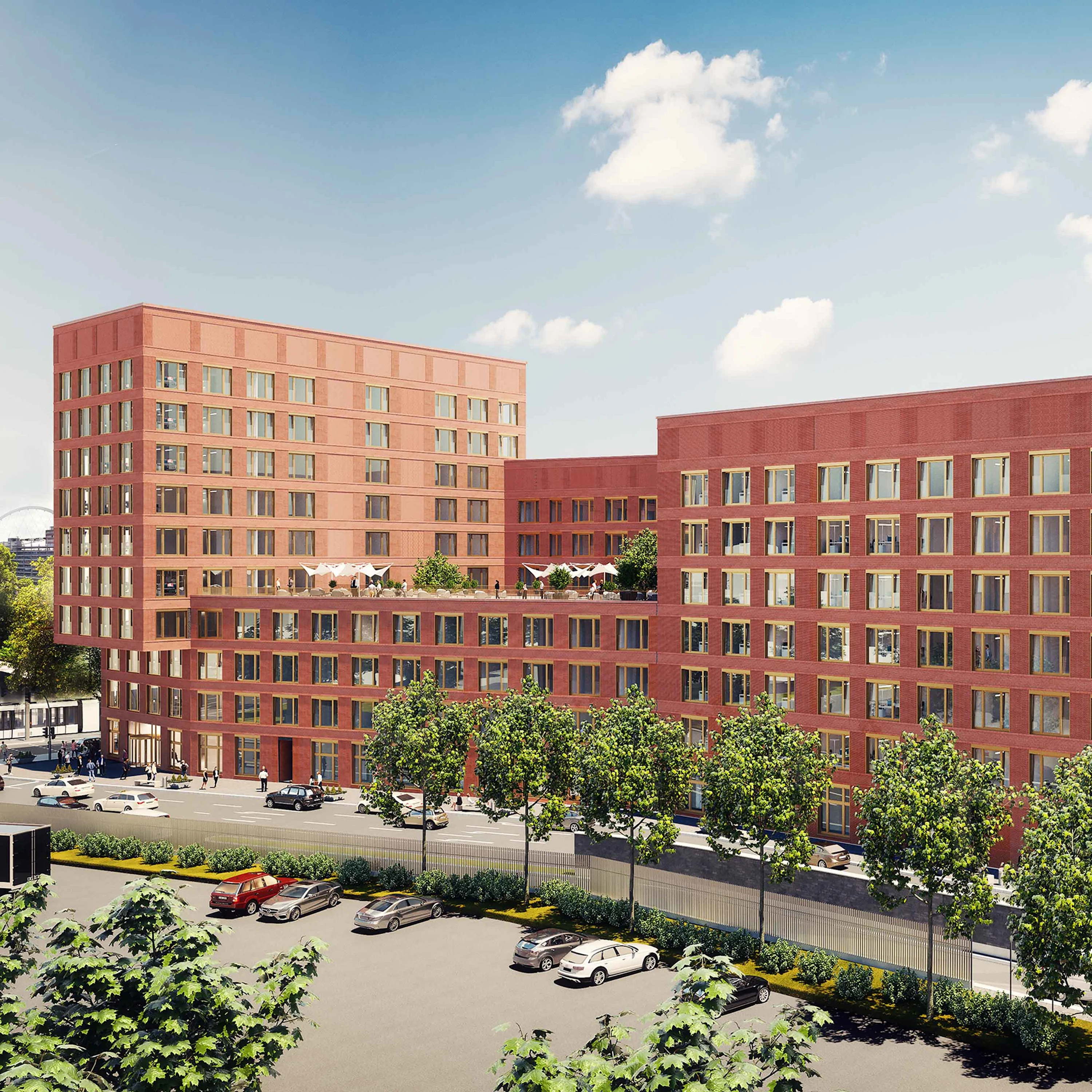 In Deutz entsteht das Büroensemble Mattes & Düxx. Direkt an der Siegburger Straße mit bester Anbindung in alle Richtungen sind der Deutzer Bahnhof oder der Dom in wenigen Minuten erreicht. Nachhaltigkeit ist bei diesem Projekt gelebtes Prinzip: Beispiele hierfür sind die angestrebte DGNB-Zertifizierung in Gold und die geplante ESG-Konformität. Auch an den Nutzer-Komfort ist gedacht. E-Ladeplätze, quartiersbelebende Nutzungen im Erdgeschoss sind ebenso eingeplant wie Dachterrassen und der begrünte Innenhof. Das Bürohaus Mattes ist bereits fertiggestellt, Düxx in Bau.