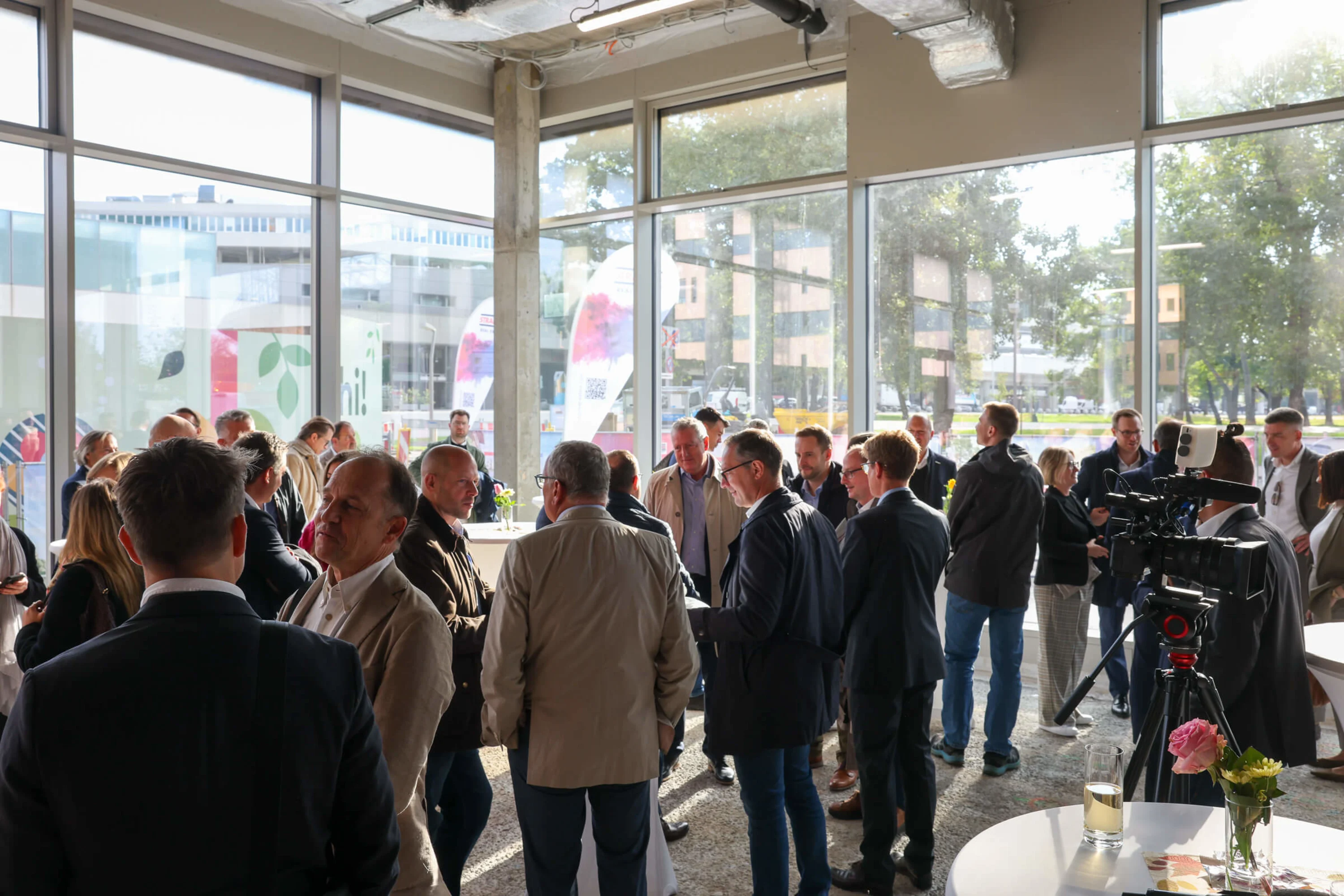 Wie der Weitblick die Skyline des Viertel Zwei in Zukunft optisch prägen wird, konnten die Gäste der Grundsteinlegung sowohl anhand eines virtuellen Drohnenflugs als auch in Form eines 2 Meter hohen Hologramms erleben.