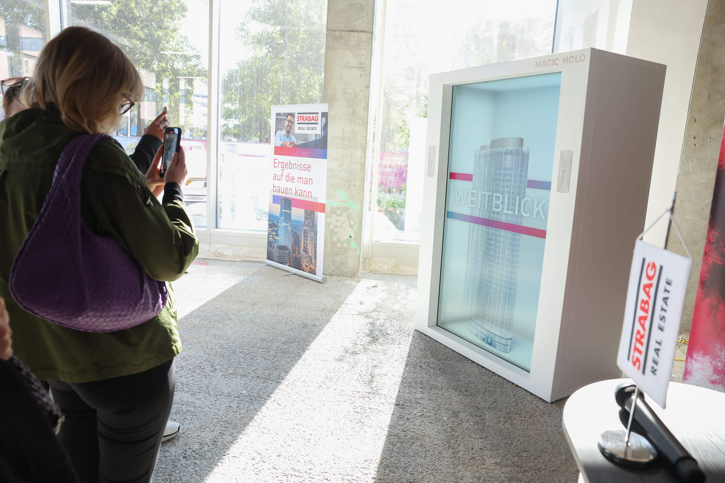 Wie der Weitblick die Skyline des Viertel Zwei in Zukunft optisch prägen wird, konnten die Gäste der Grundsteinlegung sowohl anhand eines virtuellen Drohnenflugs als auch in Form eines 2 Meter hohen Hologramms erleben.