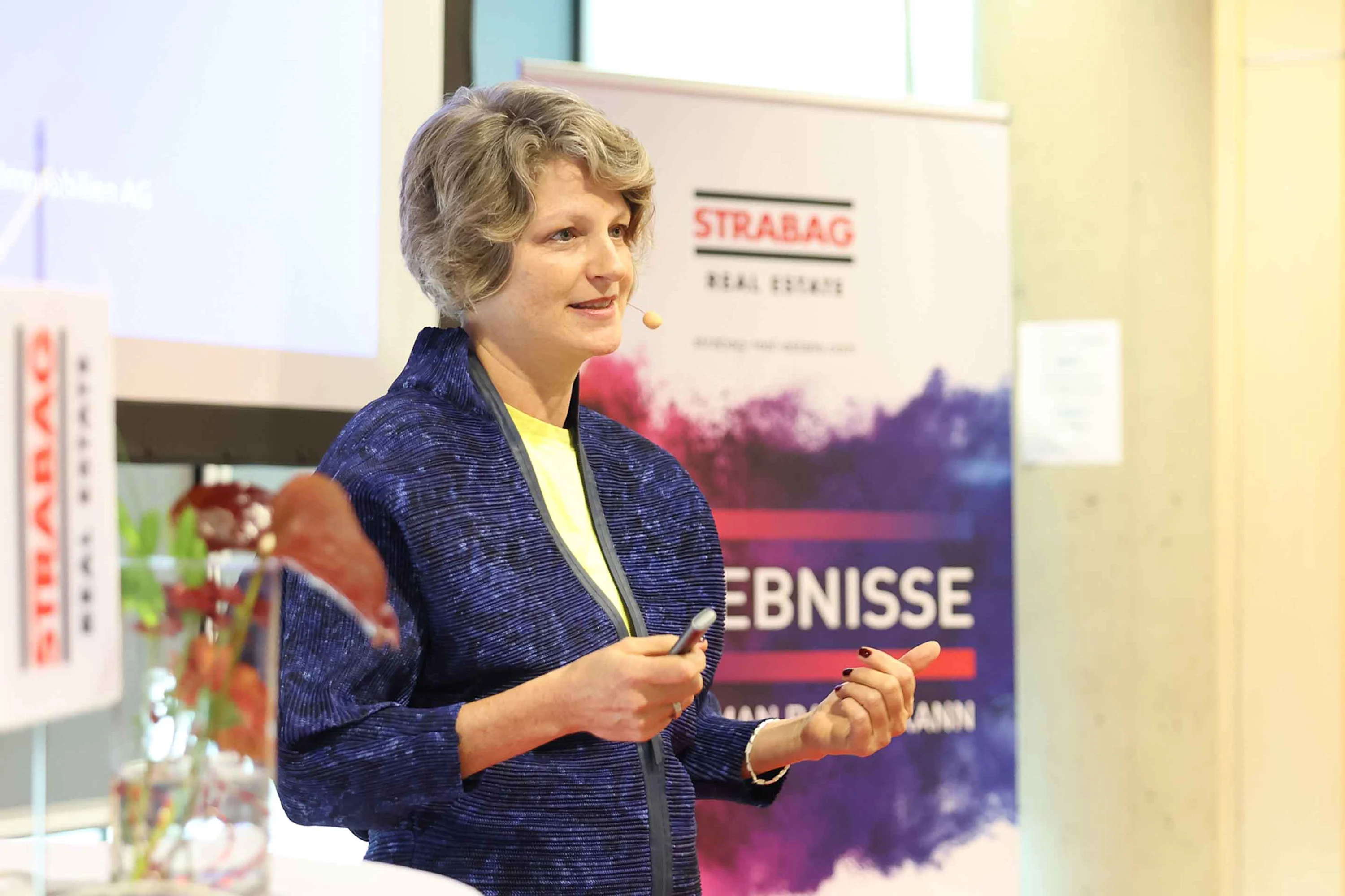 Gastrednerin Birgit Gebhard mit Geschäftsführer Johannes Mayr und Erwin Größ der STRABAG Real Estate in Österreich.