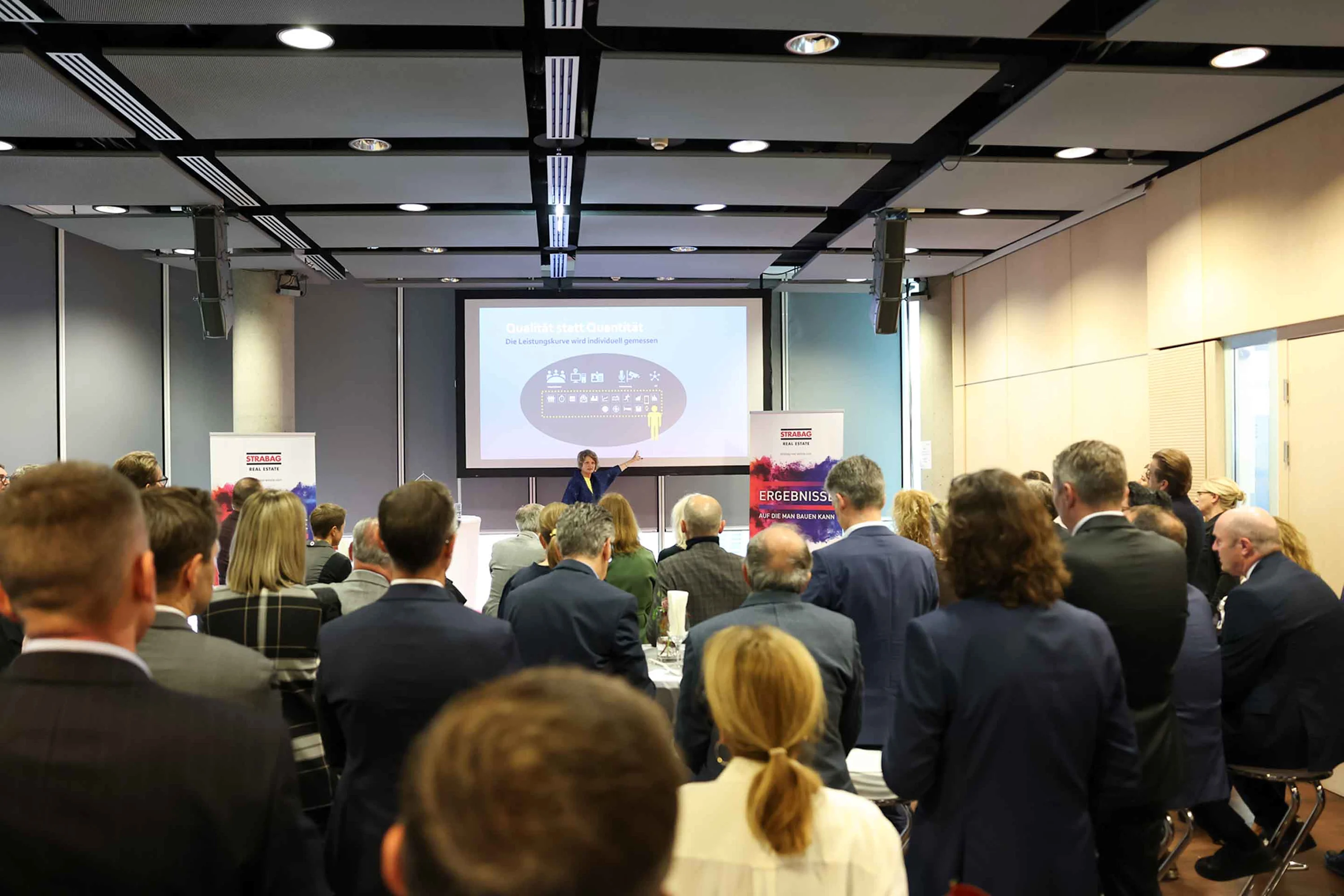 Mit herrlichem Blick über die Dächer Wiens und einem köstlichen Frühstück trafen sich auch heuer wieder zahlreiche Vertreter:innen der heimischen Immobilienwirtschaft beim Business Breakfast von STRABAG Real Estate in der Sky Stage im Tech Gate Vienna. Die Gastrednerin Birgit Gebhardt gab den Gästen interessante Anregungen und wertvolle Einblicke über die künftigen Herausforderungen bei den Entwicklungen neuer Büroimmobilien.