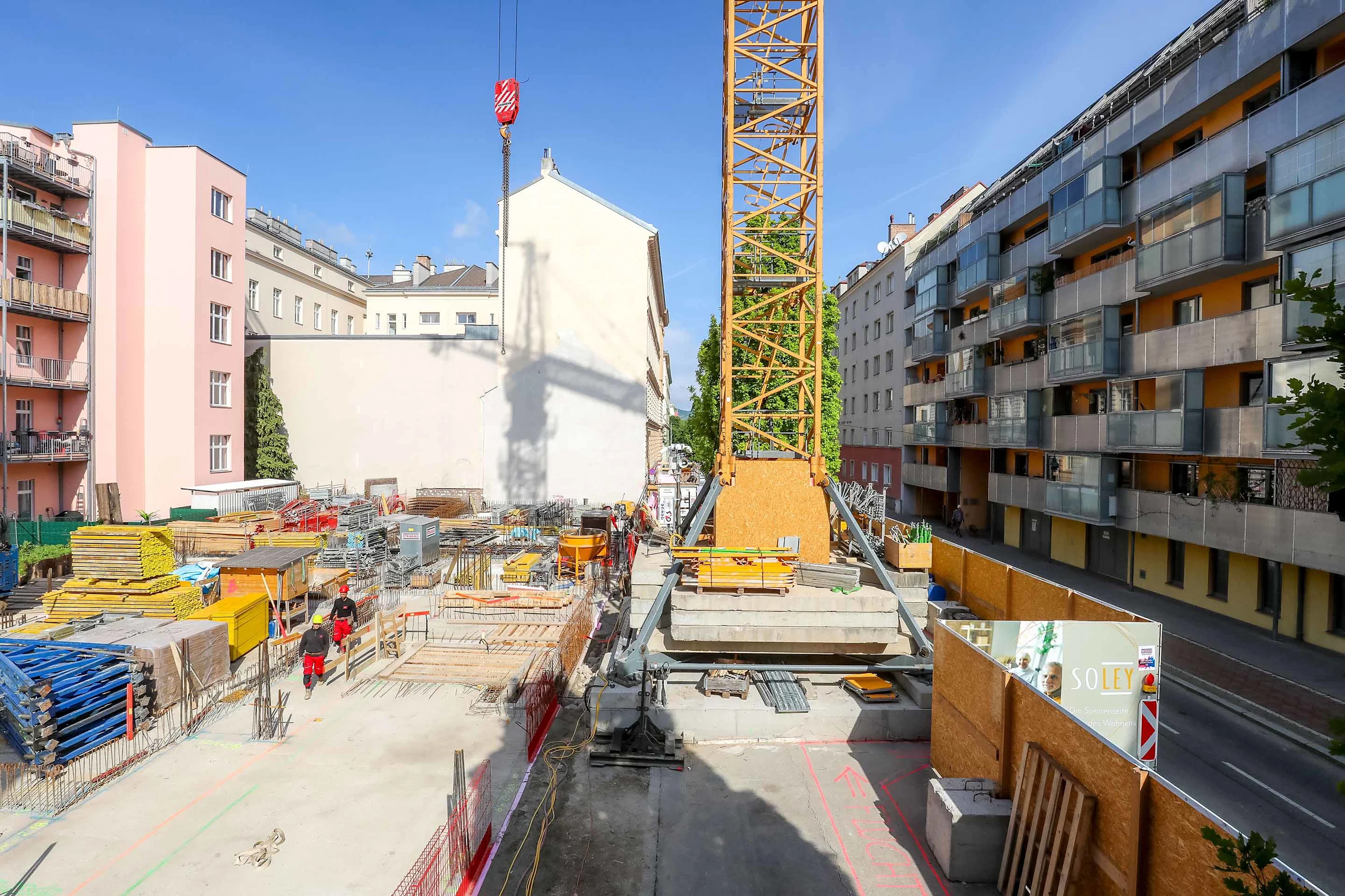 Das Soley gilt als modernes und klimafittes Neubauprojekt und punktet mit einer Vielzahl an nachhaltigen Technologien. Die österreichische Forschungsstudie RCC2 (Reduced Carbon Concrete), die durch ein branchenĂŒbergreifendes Konsortium durchgefĂŒhrt wurde, untersuchte das Potenzial innovativer Betonrezepturen zur Dekarbonisierung von Beton. Der Performancebeton reagiert in der Sommer- und Winterversuchsreihe in der Festigkeit unterschiedlich. HierfĂŒr hat Doka einen funktionalen Prototyp einer intelligent beheizbaren Schalung entwickelt, der bei geringen Temperaturen fĂŒr eine zusĂ€tzliche FrĂŒhfestigkeit sorgt.