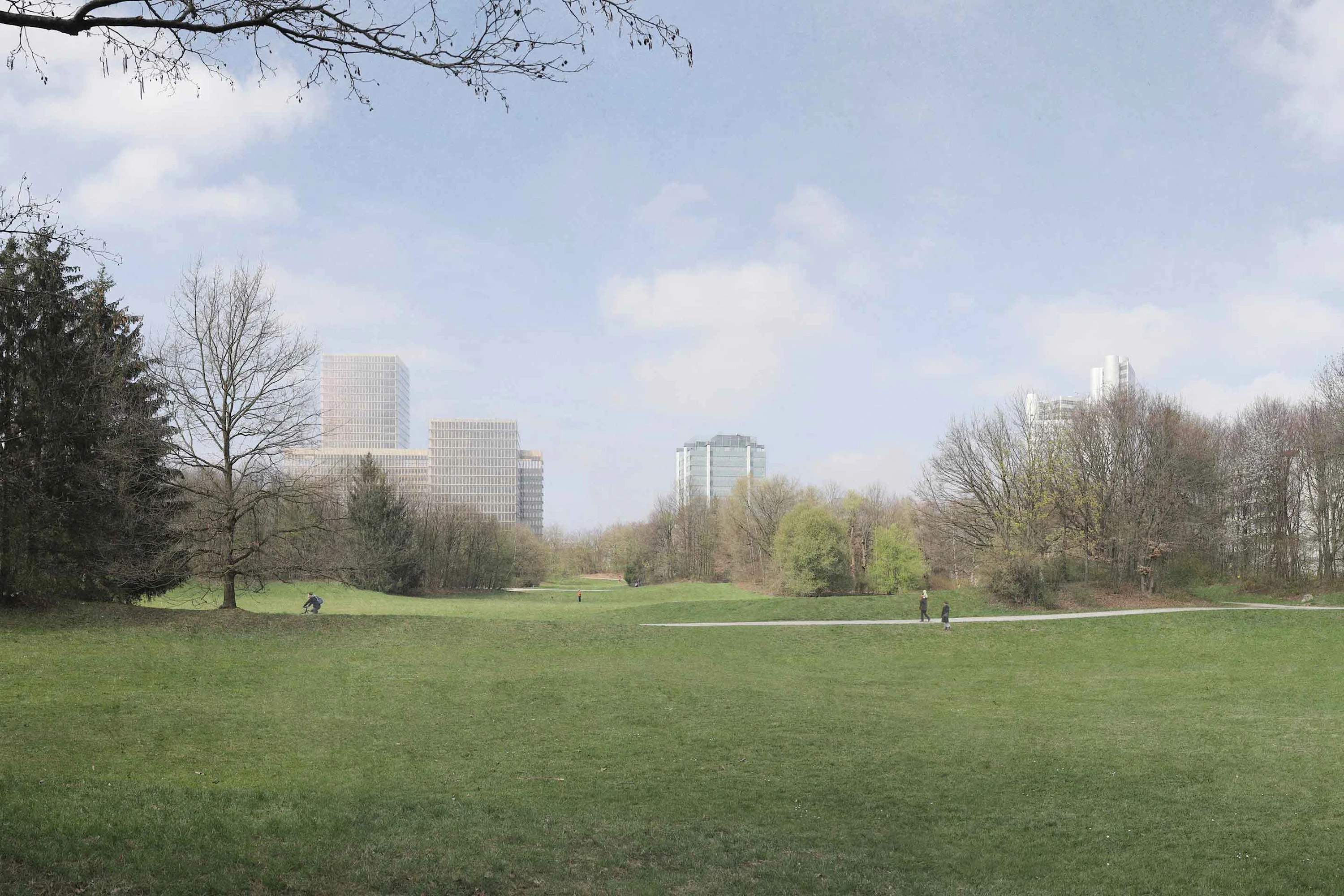 In zentraler Münchener Lage sollen drei moderne und flexible Bürogebäude (75.000 m² Bürofläche), teilweise in Holz-Hybrid-Bauweise und mit einer Kindertagesstätte, Gastronomie und Skybar für die Bayerische Versorgungskammer entstehen. Im künftigen Hauptsitz der BVK geben Arbeitskomfort und Nachhaltigkeit den Ton an: Außen die zeitlos elegante Architektur von David Chipperfield, innen die naturbelassene Atmosphäre aus Glas und Holz. Durchdacht im Grundriss, sind Flächen hochflexibel und effizient zu bespielen. Der 100-Meter-Turm besticht durch Weitsicht, die zwei anderen Bürohäuser des Trios durch Holzhybrid-Bauweise. Zum Durchatmen und Pausieren bietet der Denninger Anger das perfekte Grün hinterm Haus.