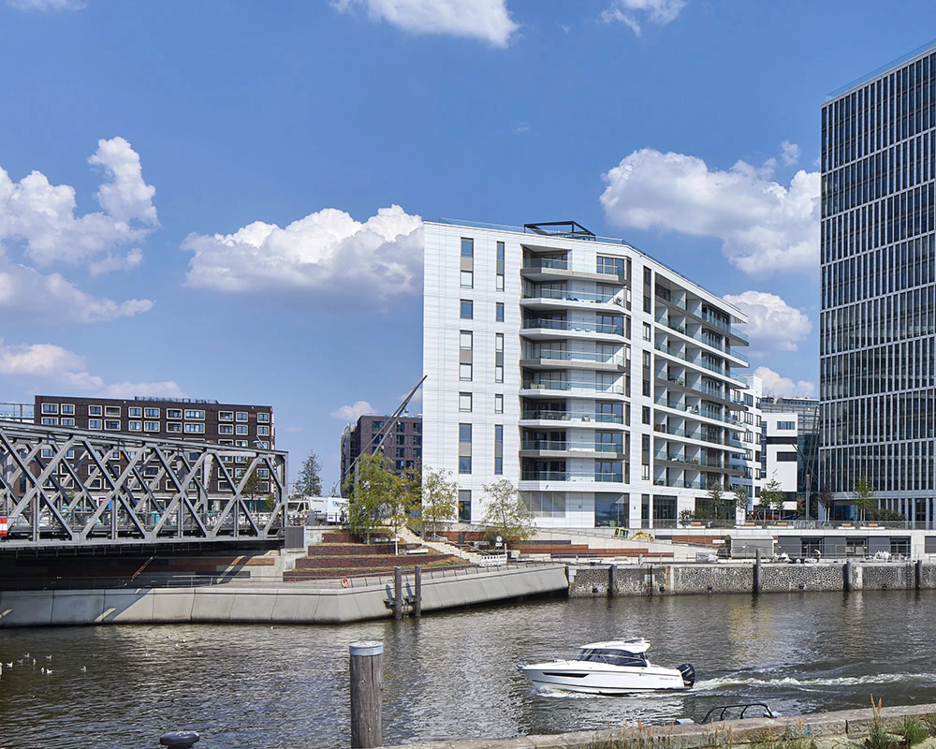 Apartmenthaus in der Hafen City Hamburg mit atemberaubendem Wasserblick