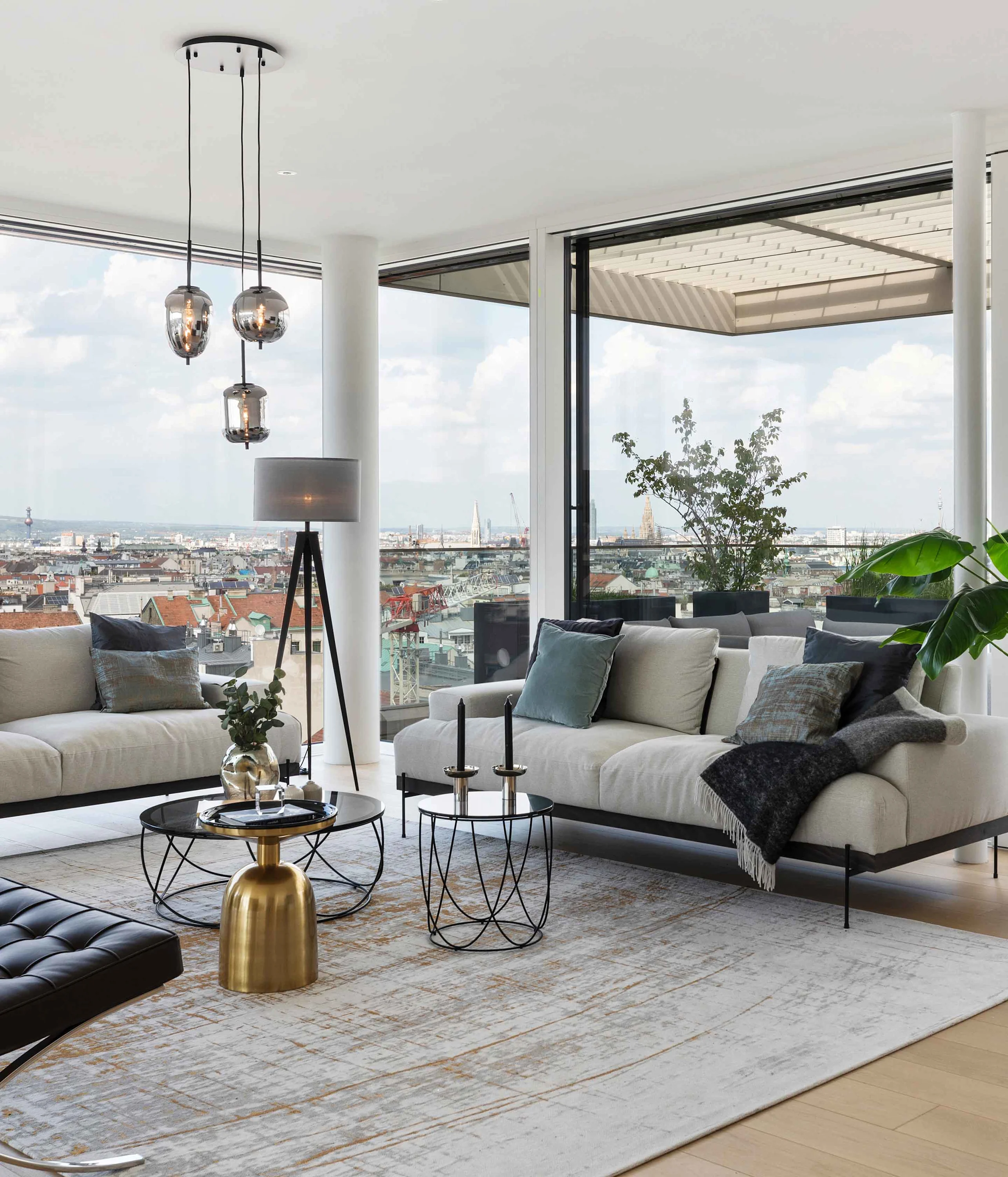 Private Außenbereiche und luftige Terrassen bieten einen faszinierenden Blick auf das pulsierende Wien.