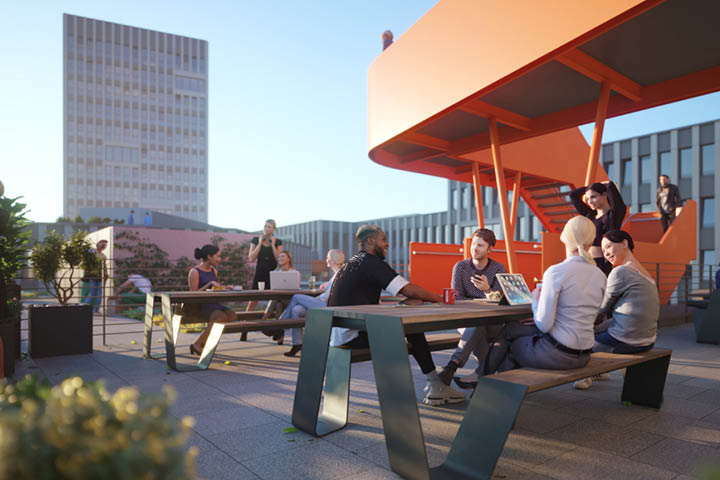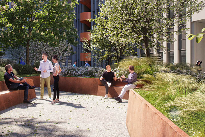 Mattes & Düxx ist Kölsche Mundart und heißt so viel wie „starkes Deutz“. Beide Bürogebäude überzeugen durch hohe Nachhaltigkeits-Standards und flexible Bürogrundrisse, die sicherstellen, dass sich die Arbeitsorganisation den Mitarbeiter-Bedürfnissen anpassen lässt. Schon heute ist absehbar: Ob zum Arbeiten unter freiem Himmel oder zur Pause, der Innenhof wird der begehrte Treffpunkt sein, auch wenn die Rheinnähe wirklich verlockend ist.