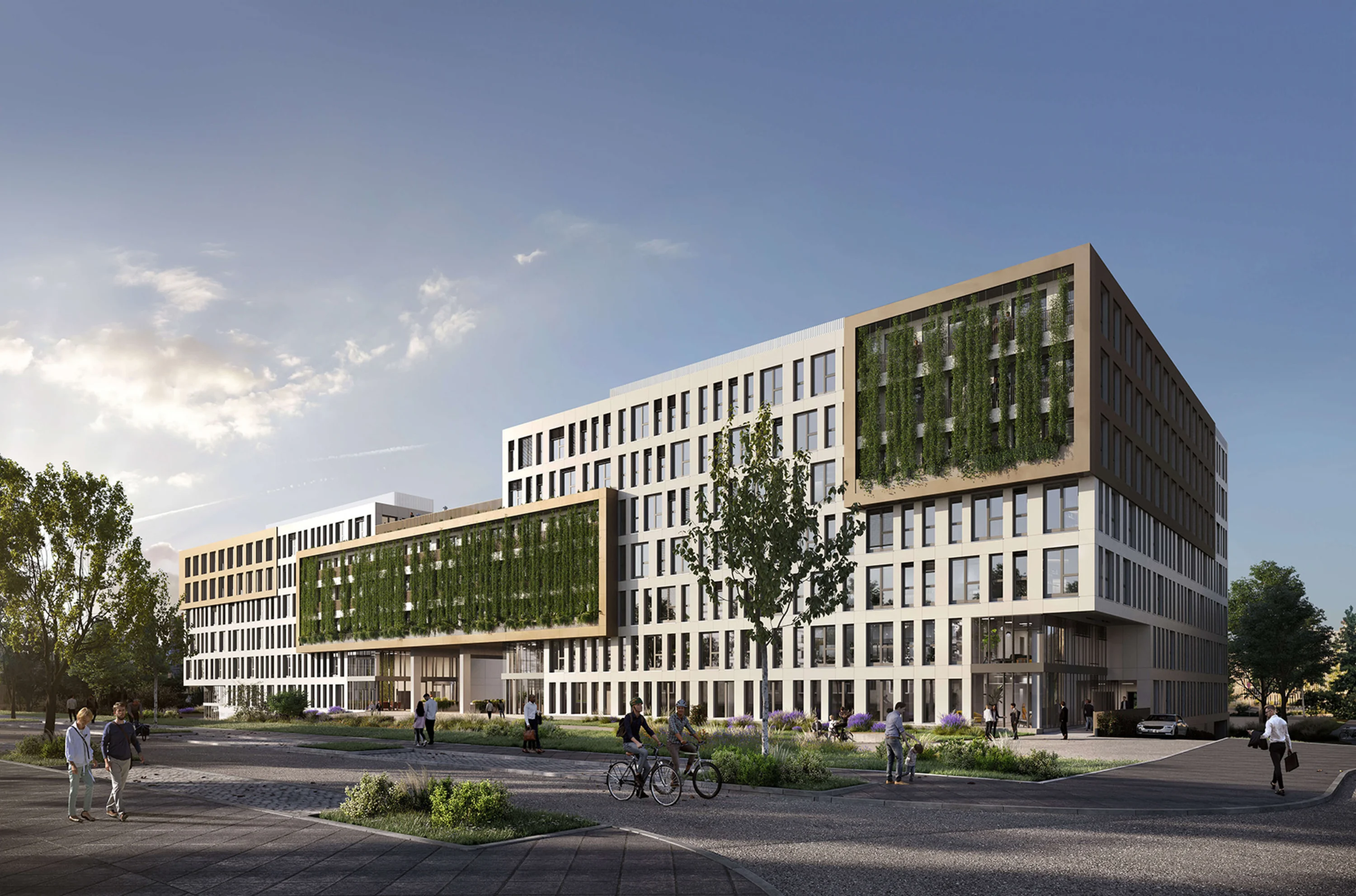 Attraktives Gebäudekonzept auf 22.000 m² mit sechs bis sieben Geschossen und begrünten Balkonen