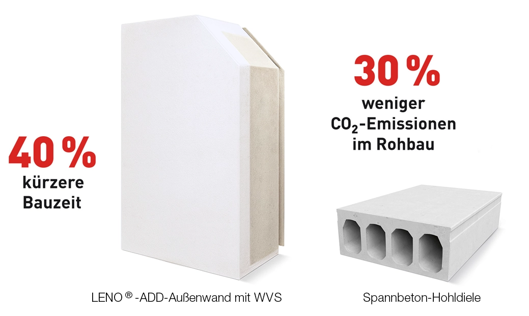 LENO®-ADD-Außenwand mit WVS Das Herzstück der MOLENO®-Wohngebäude bilden die LENO®-ADD-Außenwandelemente. Ein verwindungssteifes Brettsperrholz ergänzen wir um Dämmschichten und viele Fassadenoptionen – zum Beispiel mit Türen, Fenstern und Jalousien – millimetergenau passend vorgefertigt und abrufbereit zur individuellen Montage.