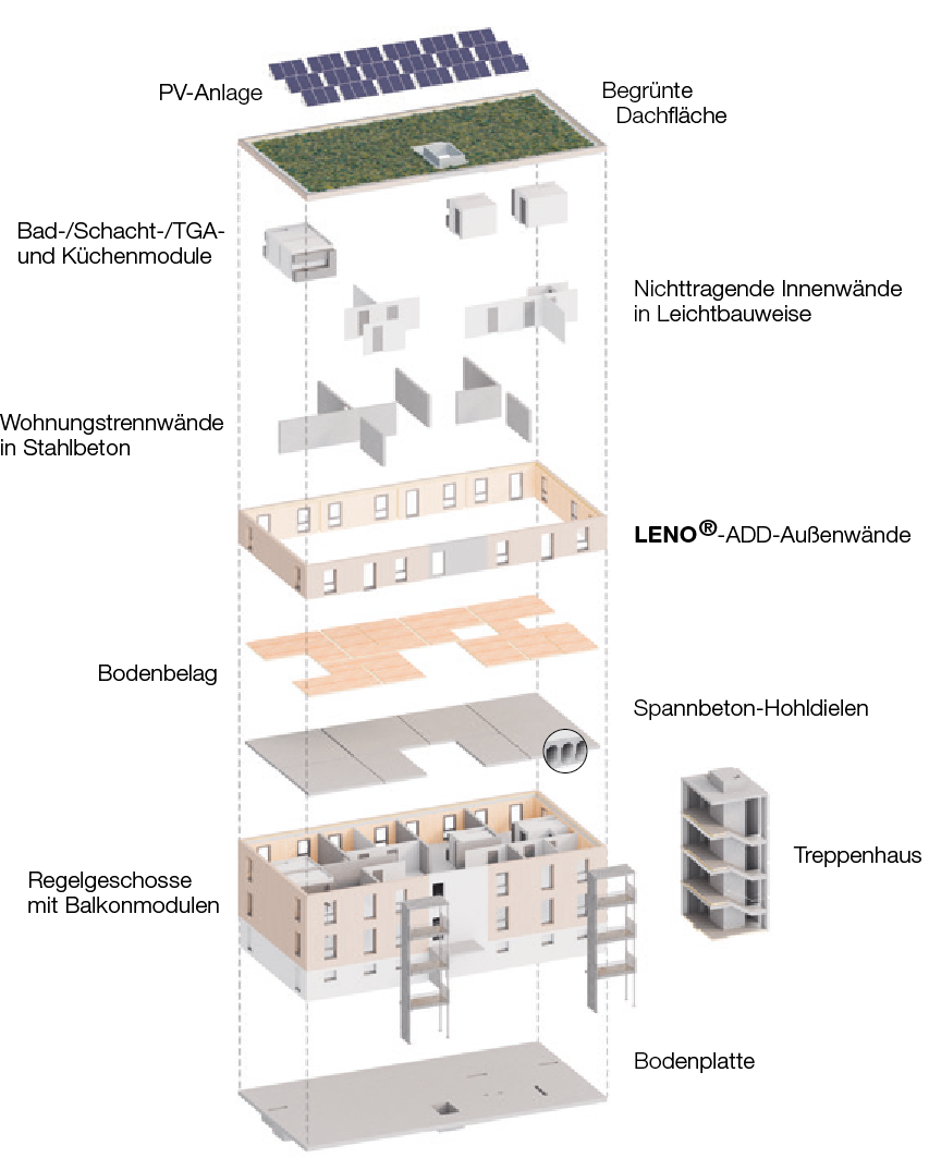 MOLENO® WOHNEN verbindet die Vorteile des Baustoffs Holz mit dem Einsatz von Beton. Unser Bausystem ohne Raster bietet große planerische Freiheit für neue Wohnprojekte, verbunden mit deutlichen Effizienzsteigerungen.