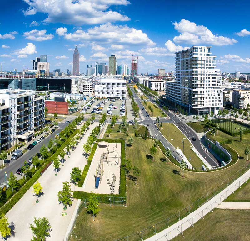 Das Frankfurter Europaviertel bietet einen lebendigen Mix aus Wohnen, Arbeiten und Lifestyle. Morgens zur Kita, mittags ein Business-Lunch und abends Einkäufe – alles lässt sich leicht mit dem Büro verbinden. Und zum Hauptbahnhof oder Flughafen sind es nur wenige Minuten.