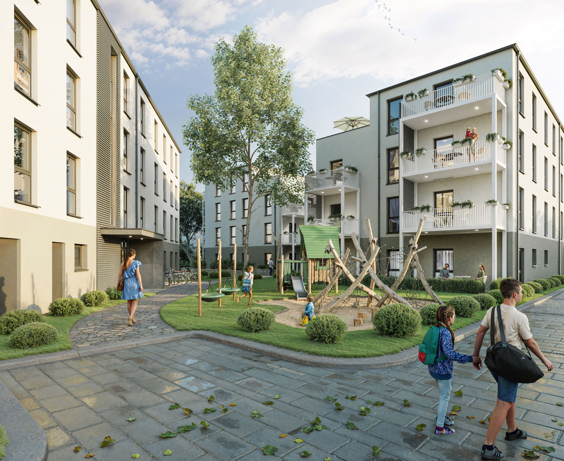 Fassade aus Glasfaserbeton, Dachterrassen, DGNB-Gold zertifiziert