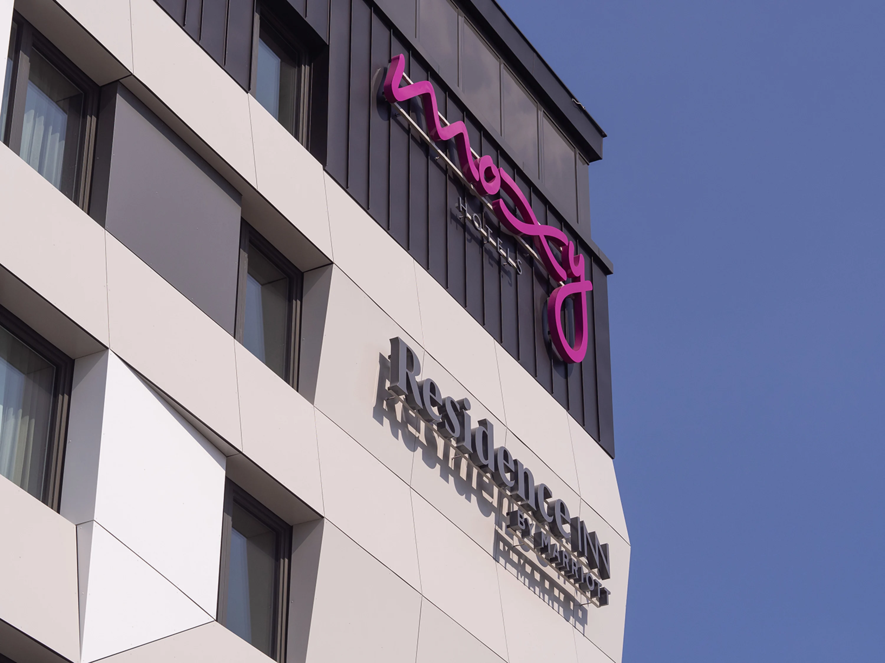 The design hotel Moxy with 203 rooms and the 43 long-stay flats of Residence Inn by Marriott are located in the Neu Marx urban development area in the immediate vicinity of event halls and numerous company headquarters. With excellent public and private transport connections, the hotel is located in a vibrant area of the city and offers the ideal starting point to both the airport and the city centre.