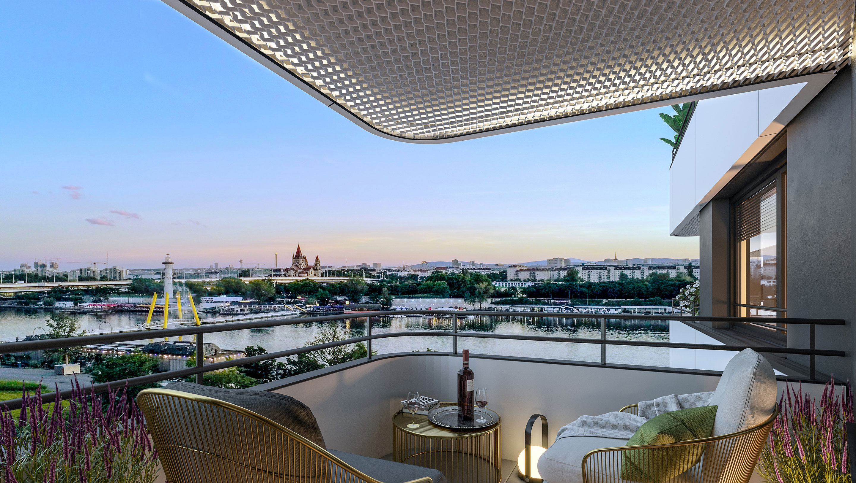 You can enjoy the sunset over the Danube Island from the living room window, and the wide range of leisure and recreation areas around the complex provide the ideal setting for living life to the fullest – close to nature in the heart of the historic cosmopolitan city of Vienna.