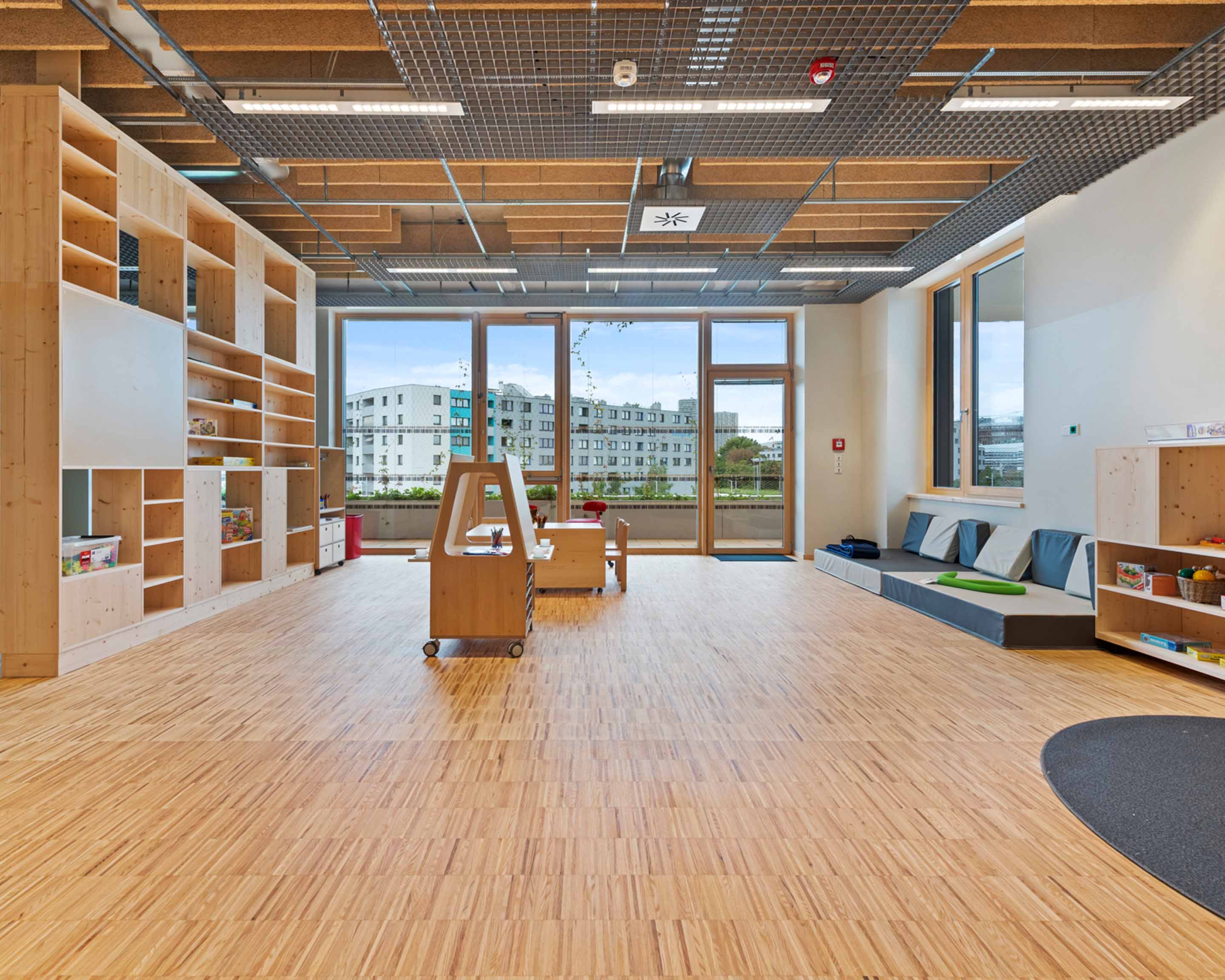 The new Simmering education project was named after the Austrian pioneer in elementary education, Heidemarie Lex-Nalis. In line with the commitment of its namesake, the Heidemarie Lex-Nalis education campus offers a comprehensive range of educational, therapy, creative, and sports facilities for 825 children up to 10 years of age. The implementation of the PPP project, which is a collaboration between STRABAG Real Estate and the City of Vienna, is based on a sustainable energy concept.