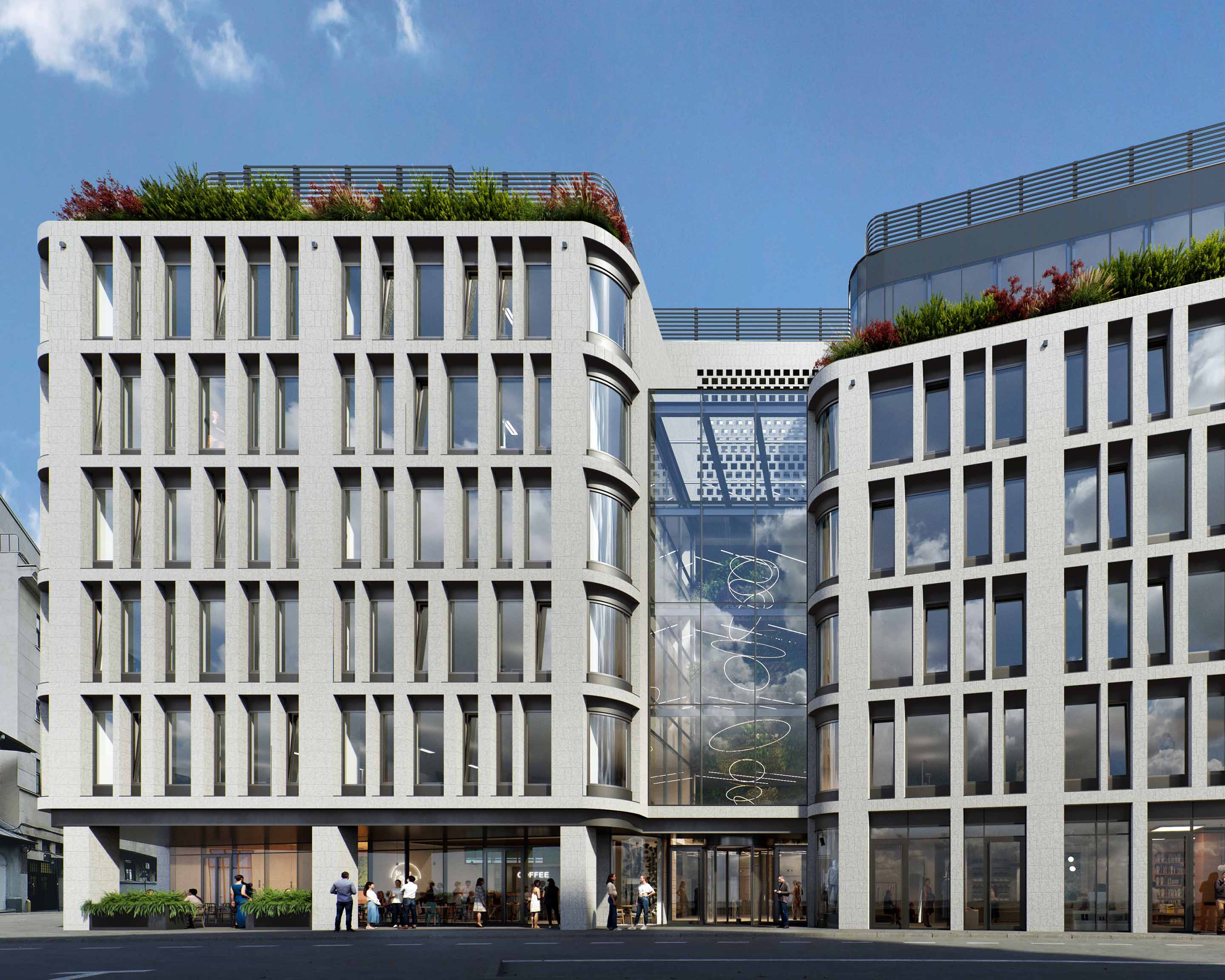 Po celodennej práci v pohodlnej prémiovej kancelárii a stretnutiach na terasách s nádhernou zeleňou si vychutnáte mestský život v okolitých divadlách, kinách, koncertných sálach, butikoch, obchodoch, reštauráciách a baroch: inteligentná koncepcia rovnováhy medzi pracovným a súkromným životom podľa moderných požiadaviek.