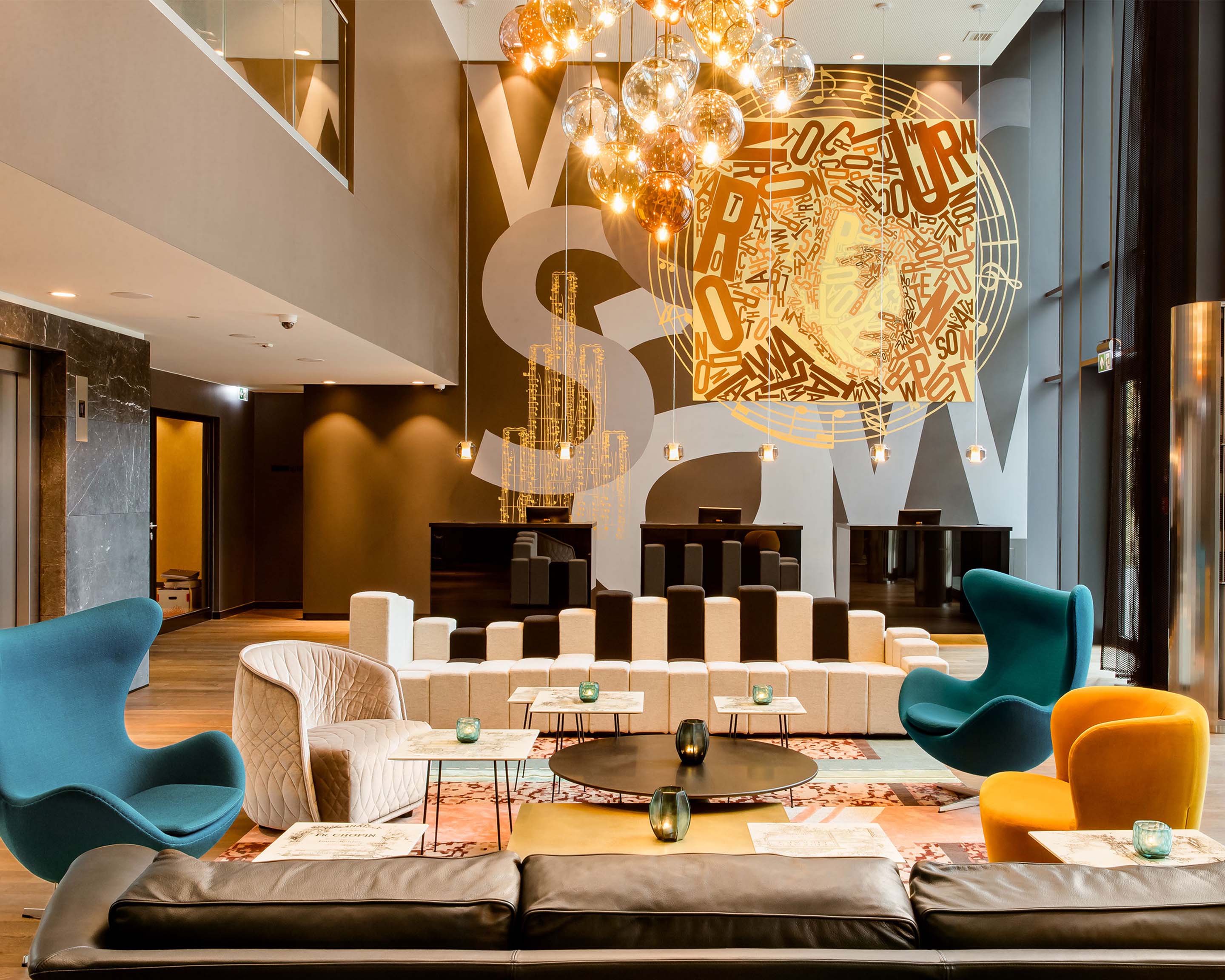 V atmosfére Varšavy a návrhu hotela Motel One sa prejavujú melódie poľského hudobníka a skladateľa Fryderyka Chopina, ktorý sa narodil v roku 1810.